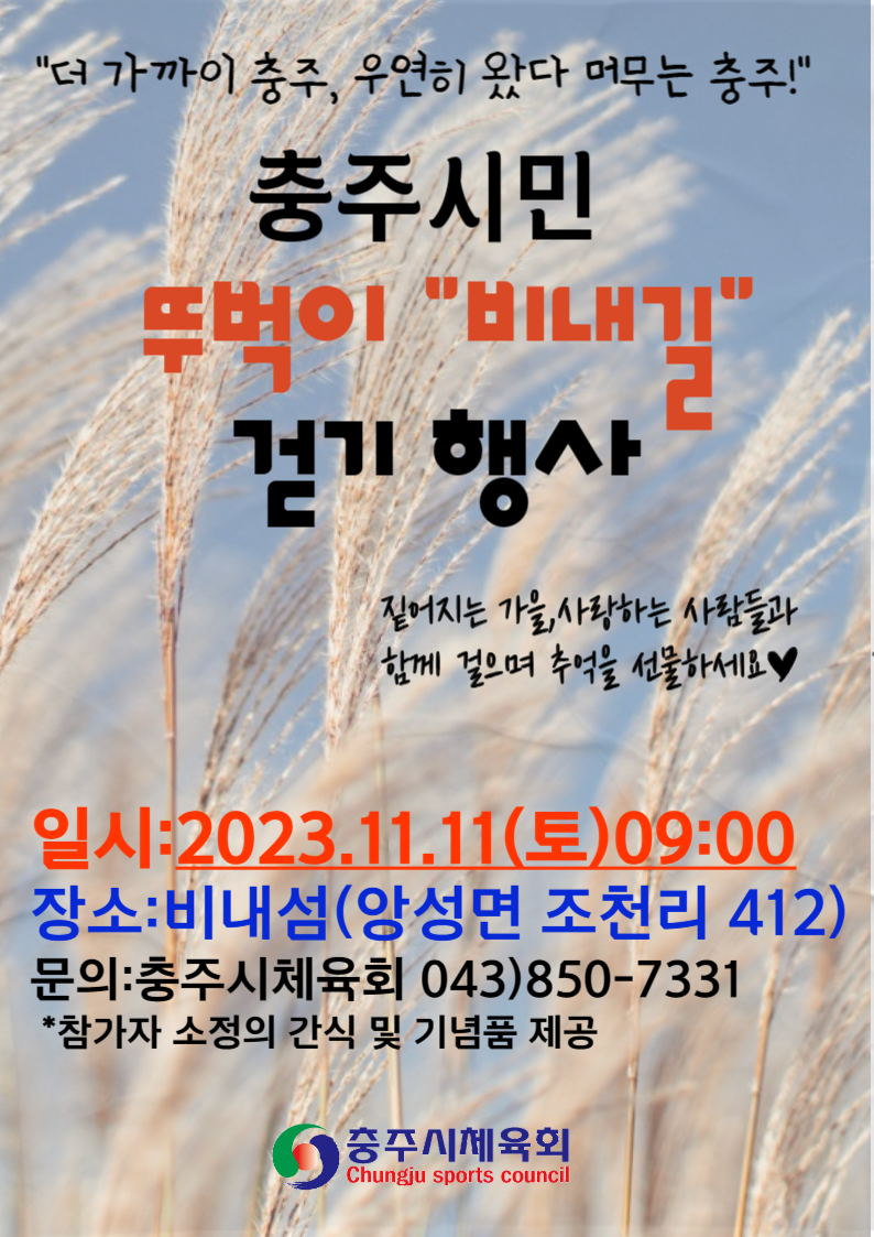 2023 충주시민 "뚜벅이 비내길" 걷기행사를 붙임과 같이 하오니 많은참여바랍니다. |