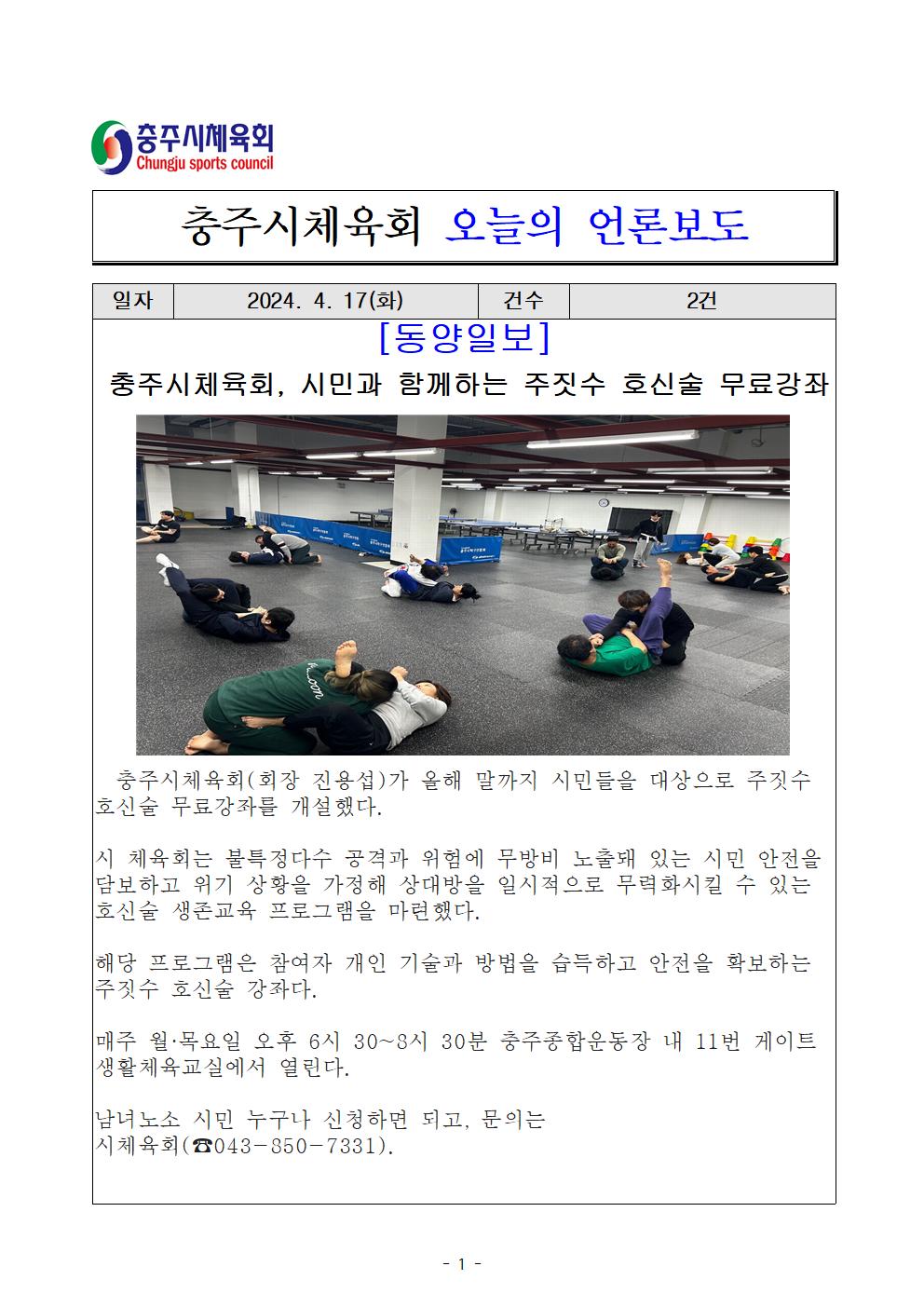 | 주짓수 호신술 무료강좌 운영 (4. 16일) | |