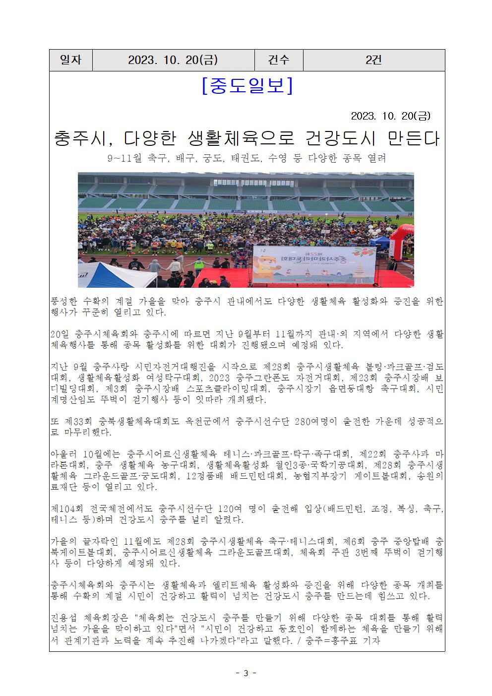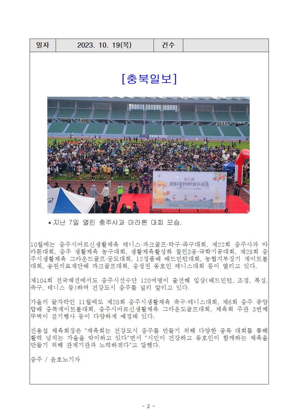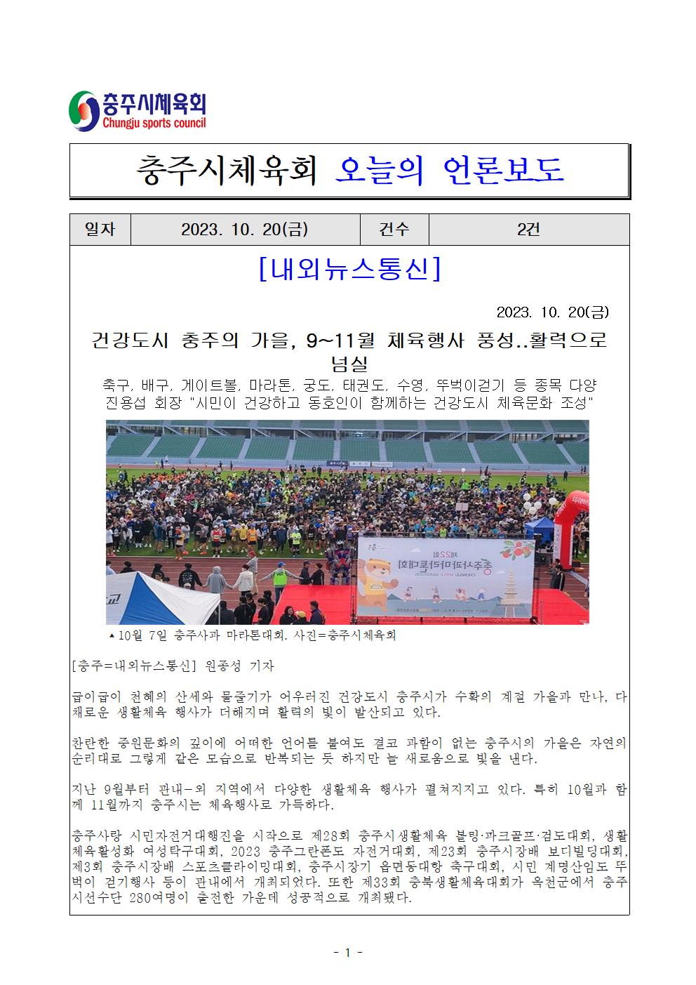 [풍성한 가을 다양한 생활체육대회.... 건강도시 충주 만들기]