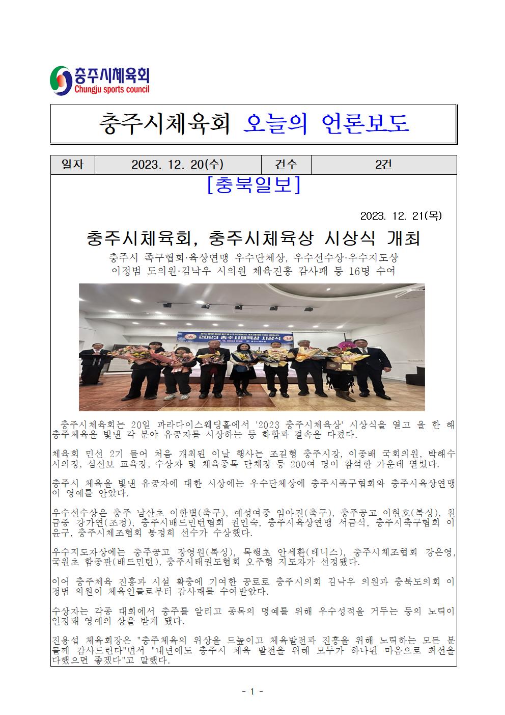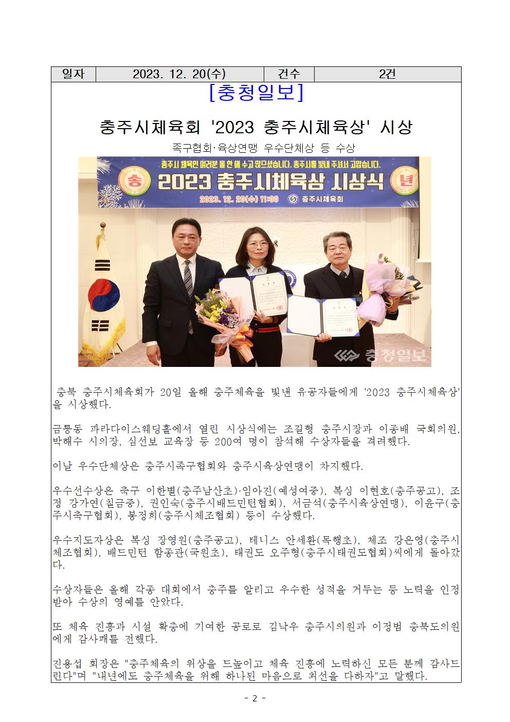 | 2023 충주시체육상 시상식 (12. 20일) | |