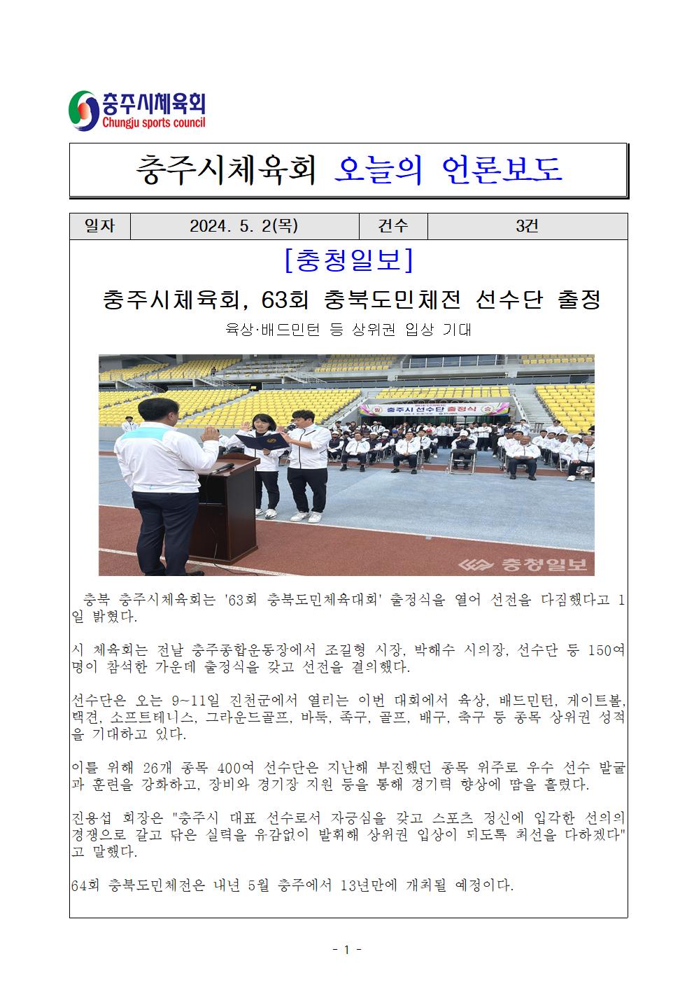 언론보도 정리(제63회 충북도민체전 출정식, 24. 4002 (충청매일).jpg