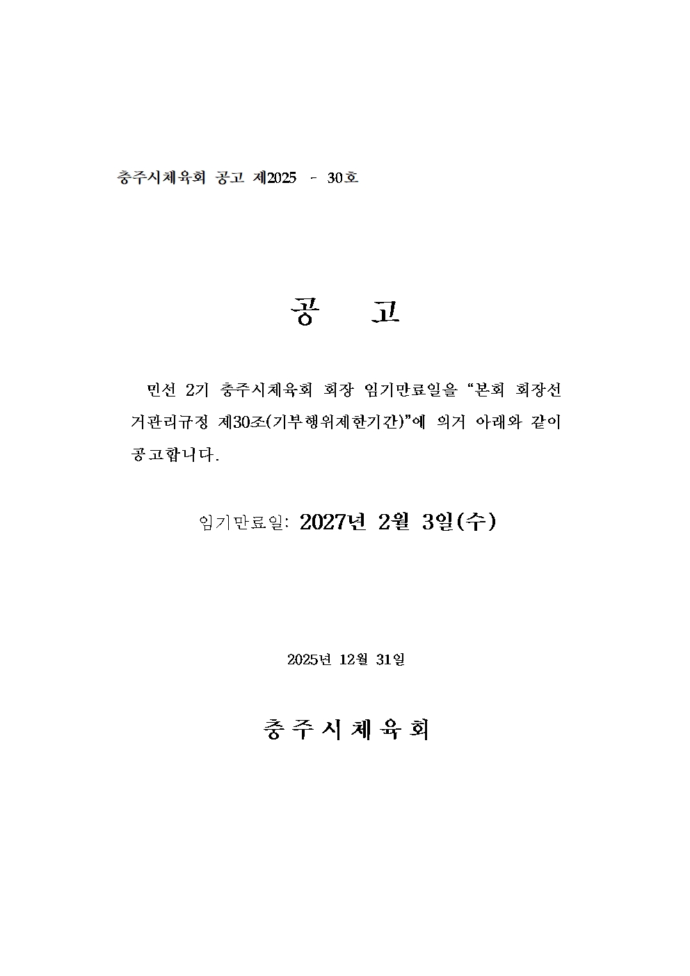 | 민선2기 충주시체육회장 임기만료일 공고 | |