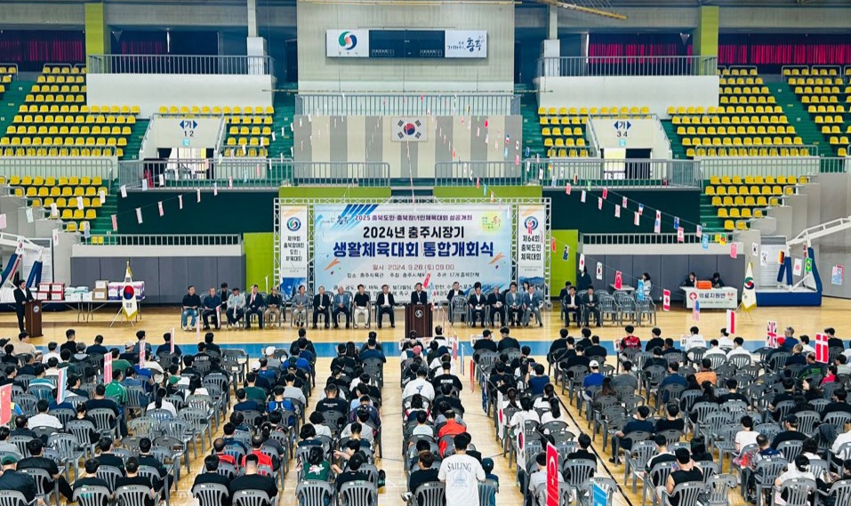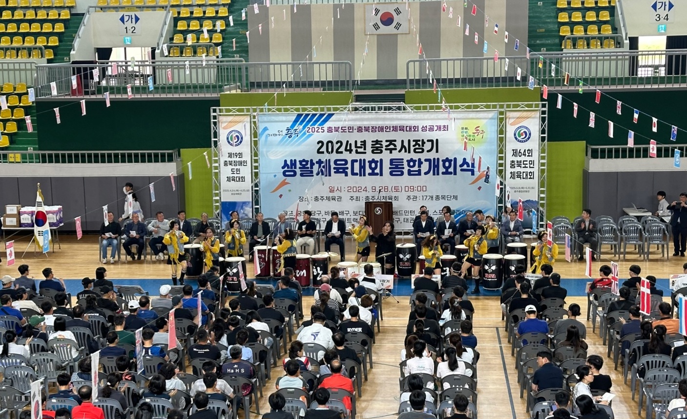 [2024 충주시장기 생활체육대회 통합개회식] -일시 : 2024. 9. 28(토) 09:00 -장소 : 충주체육관 -주관 : 충주시체육회(회장 진용섭) -인원 : 배구, 축구, 탁구 등 17개종목 500여 명 *통합개회식이후 종목별 경기진행 -충주시장기 생활체육대회 통합개회식- -식전행사- -개회선언(정길수 족구협회장)- -대회사(진용섭 충주시체육회장)- -격려사(조길형 충주시장)- -축사(이종배 국회의원)- -축사(김낙우 충주시의회 의장)- |
