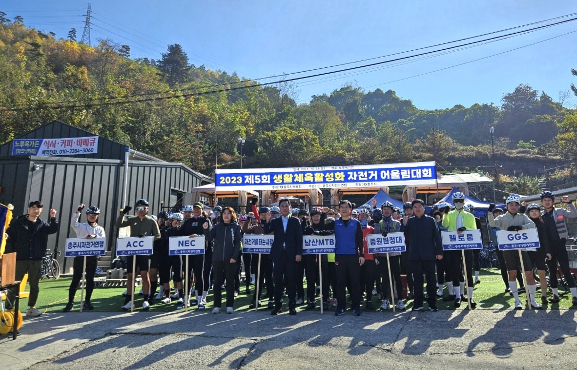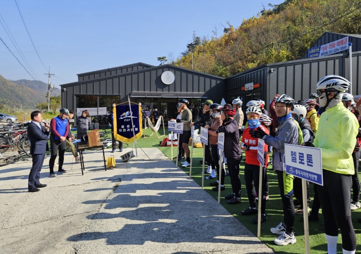 [생활체육활성화 자전거 어울림대회] -일시 : 2023. 10. 29(일) 10:30~ -장소(출발) : 노루목가든 -코스 : 노루목가득-서낭재-불정-장연-수안보-노루목가든 -주관 : 충주시자전거연맹(회장 김원중) -격려사(진용섭 충주시체육회장)- -자전거 어울림 참가 동호인- |