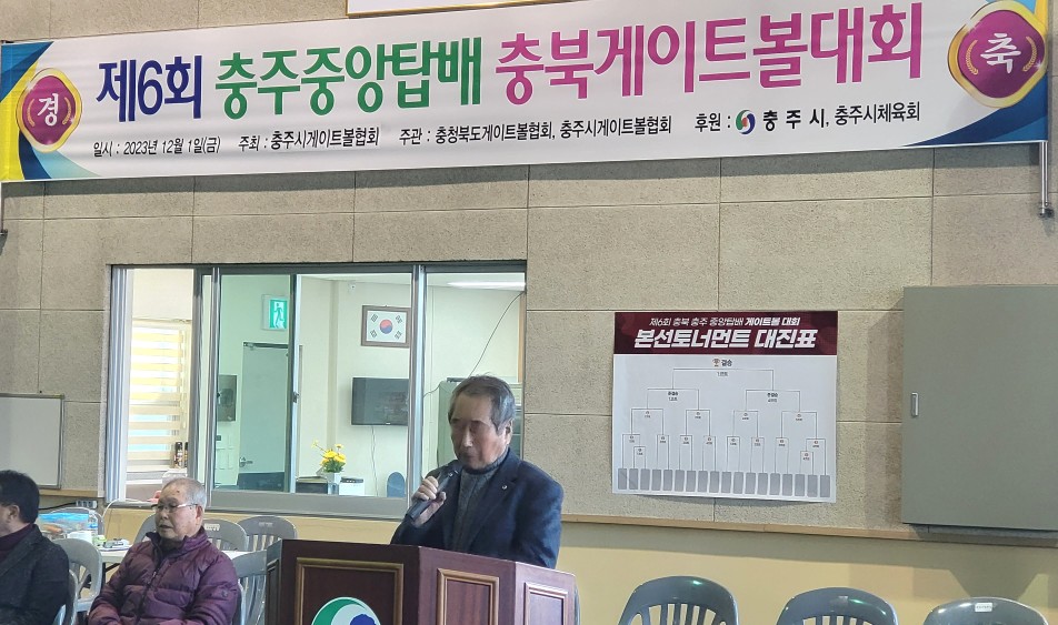 | 내용 | [제6회 중앙탑배 충북게이트볼대회] -일시 : 2023. 12. 1(금) 10:00 -장소 : 호암제1체육관 게이트볼전용구장 -주관 : 충주시게이트볼협회(회장 김세일) -축사(진용섭 충주시체육회장)- -대회사(김세일 충주시게이트볼협회장)- -축사(반용길 충북게이트볼협회장)- -국민의례- -개회식 1- -개회식 2- -경기장면 1- -경기장면 2- |