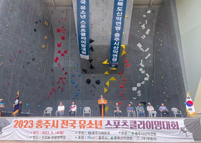 [2023 전국 유소년 클라이밍대회] -일시 : 2023. 5. 14(일) 09:00 -장소 : 수안보 인공암벽장 -인원 : 전국 유소년 클라이밍동호인(1,000여명) -주관 : 충주시 산악연맹 |