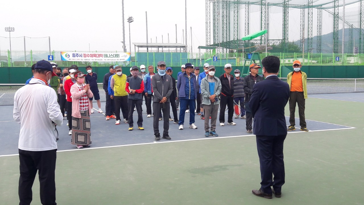 탄금대 테니스장에서 60세이상 어르신 테니스 동호인 70여명이 참석한 가운데 2022 |