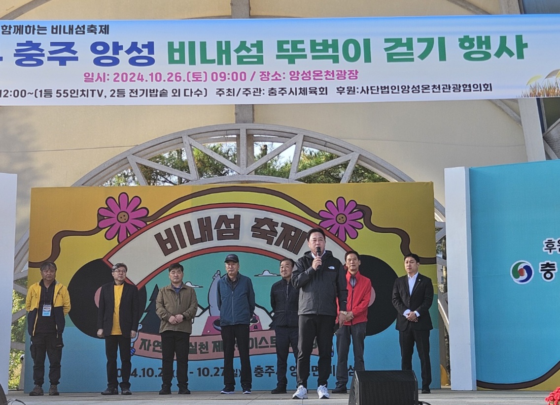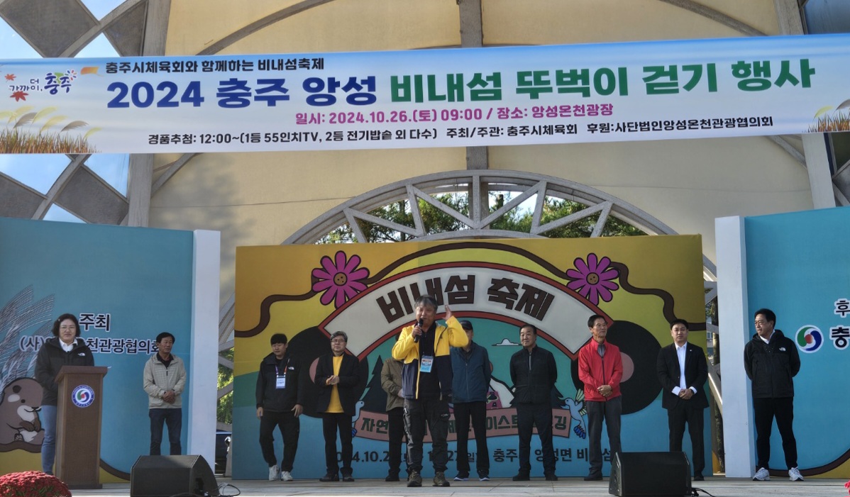| 내용 | [2024 충주 앙성 비내섬 뚜벅이 걷기행사] -일시 : 2024. 10. 26(토) 09:00~13:00 -장소 : 앙성 온천광장 및 비내섬 일원 -인원 : 600여 명 -주관 : 충주시체육회(회장 진용섭), 앙성온천관광협의회(회장 우재규) -뚜벅이 걷기행사- -대회사(진용섭 충주시체육회장)- -축사(우재규 앙성온천관광협의회장, 공동주관)- -국민의례- -몸풀기(출발전)- -비내섬 뚜벅이 걷기 개회식- -뚜벅이 걷기행사- -경품 추첨(비내섬)- |