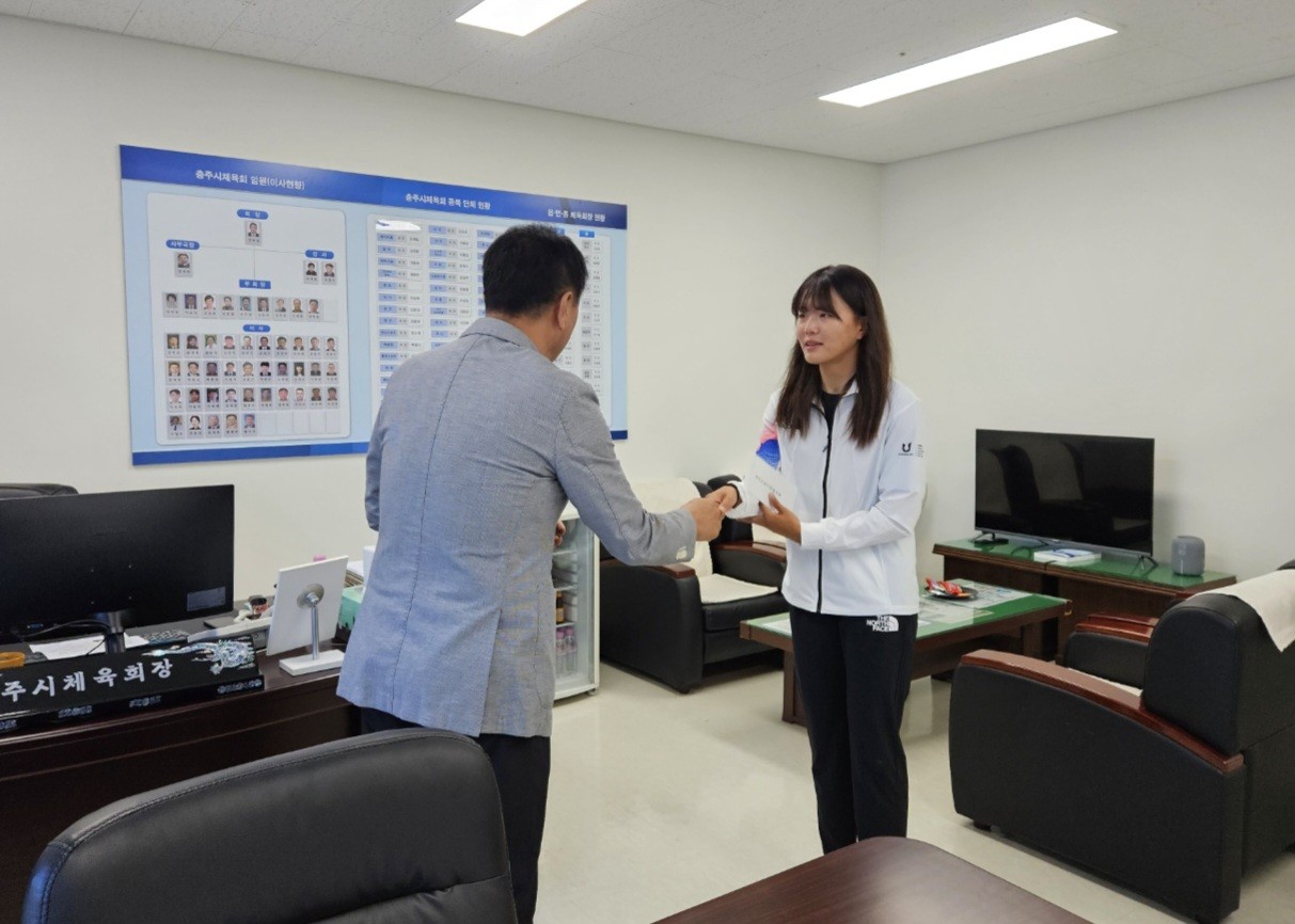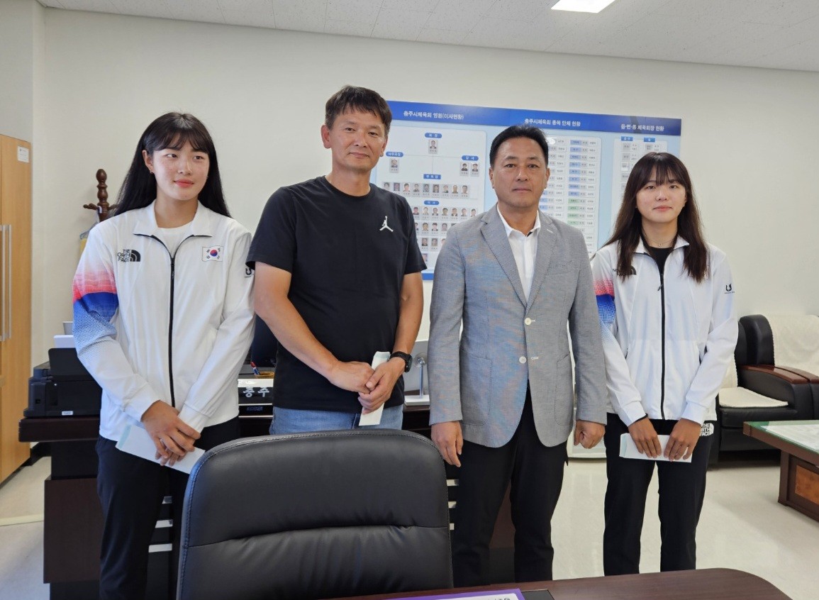 [2023 청두 유니버시아드 출전선수 격려] -일시 : 2023. 7. 19(수) -장소 : 체육회장실 -주관 : 충주시체육회 -대상 : 충주시청 직장실업팀 조정 이재윤 감독(지도자 출전), 공규빈 선수, 임은영 선수 -내용 : 유니버시아드 출전선수 격려 -왼쪽부터 공규빈 선수, 이재윤 지도자(시청 조정여자감독), 진용섭 체육회장, 임은영 선수- -이재윤 감독(충주시청 여자조정감독 / 지도자 출전)- -공규빈 선수 격려- -임은영 선수 격려- -출전선수 격려후 기념사진- |