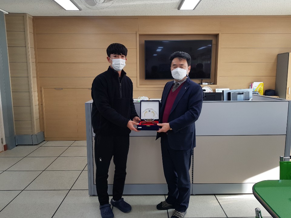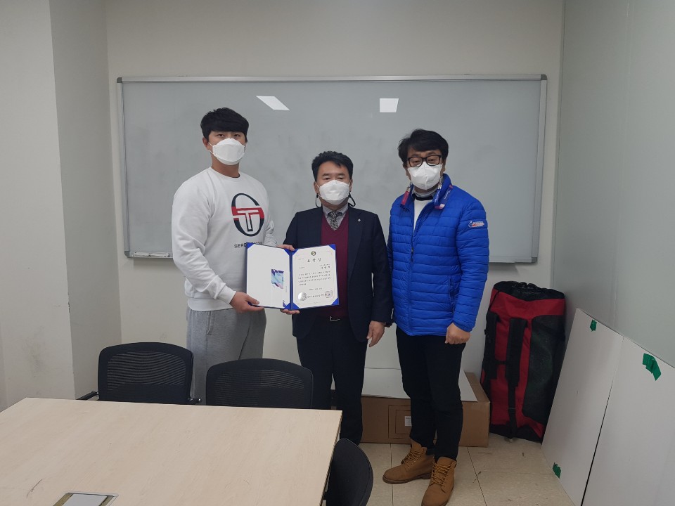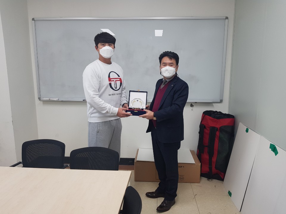 2020년 충주시체육상 시상식을 진행하지 못하여 수상자 학교 및 단체로 방문하여 시상하였습니다. |