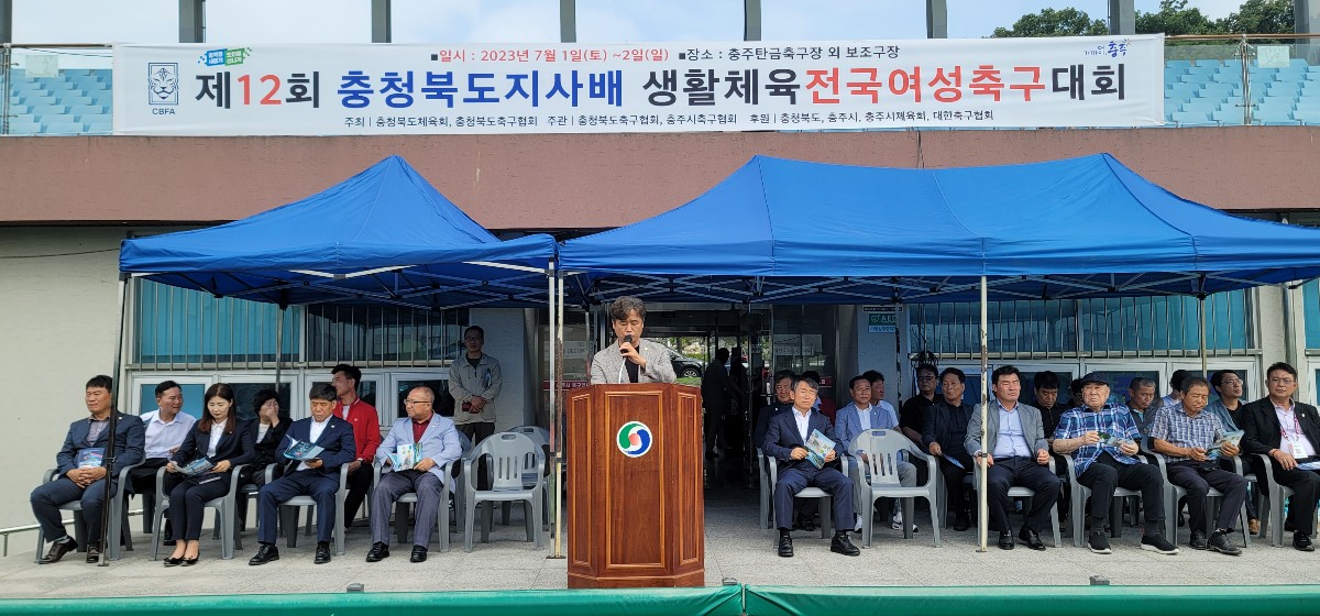 [제12회 충북도지사배 생활체육 전국여성축구대회] -기간 : 2023. 7. 1(토)~7. 2(일) -장소 : 탄금대 축구장 및 종합운동장 풋살장 -주최 : 충청북도체육회, 충북축구협회 -주관 : 충북축구협회(회장 강성덕), 충주시축구협회(회장 조재광) -후원 : 충주시, 충주시체육회, 대한체육회 -개회식(7. 1일)- -환영사(조길형 충주시장)- -격려사(신효식 충북체육회 체육진흥본부장)- -모범상 수여후 기념사진- -충주시 출전선수 격려(조길형 시장, 김낙우 시의회 행정문화위원장 등 내빈)-