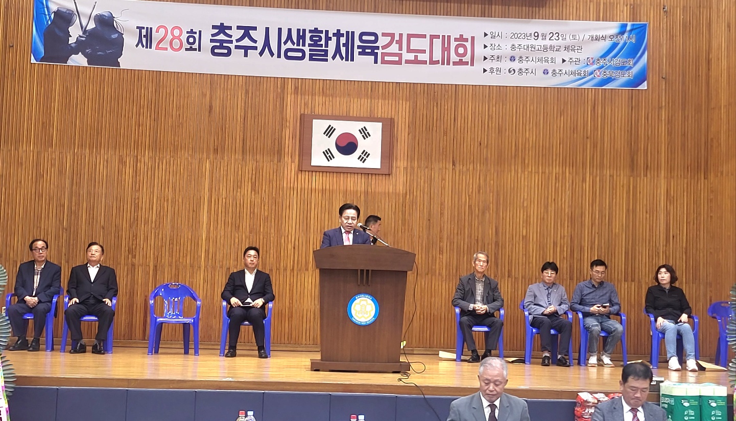 [제28회 충주시생활체육 검도대회] -일시 : 2023. 9. 23(토) 09:30~ *개회 : 9. 23(토) 11:00 -장소 : 대원고 체육관 -주관 : 충주시검도협회(회장 경윤현) -격려사(진용섭 충주시체육회장)- -대회사(경윤현 충주시검도협회장)- -개회식- |