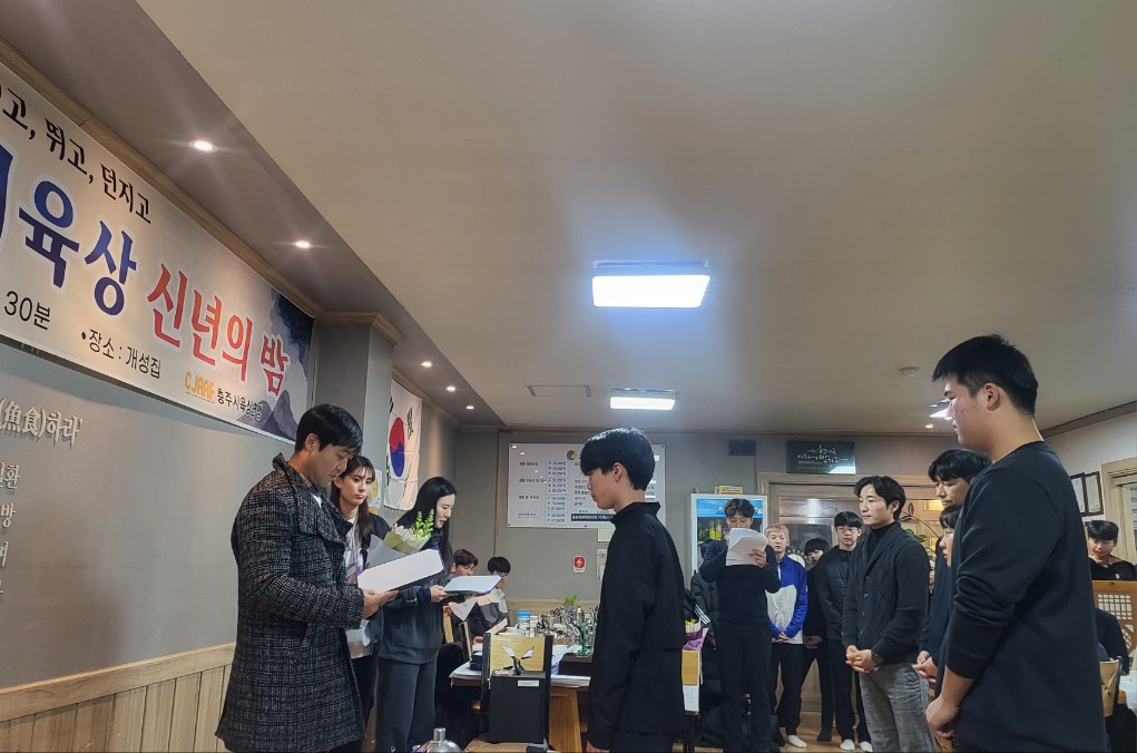 | 내용 | [충주시육상연맹 신년회] -일시 : 2024. 1. 2(화) 18:30~ -장소 : 관내 식당 -주관 : 충주시육상연맹(회장 임영빈) -내용 : 유공자 표창, 환영사, 축사, 만찬 -신년회(단체사진)- -축사(진용섭 충주시체육회장)- -장학증서 수여(수여자 임영빈 충주시육상연맹회장)- -유공자 표창수여(수여자 : 임영빈 충주시육상연맹회장)- |