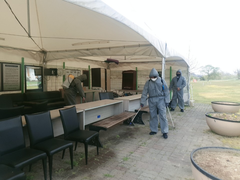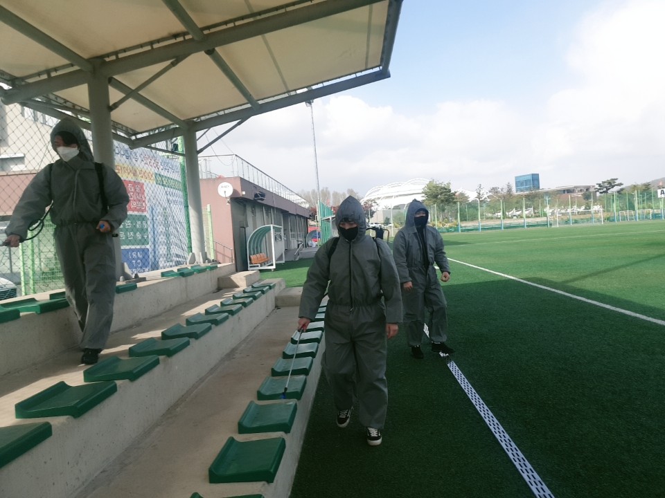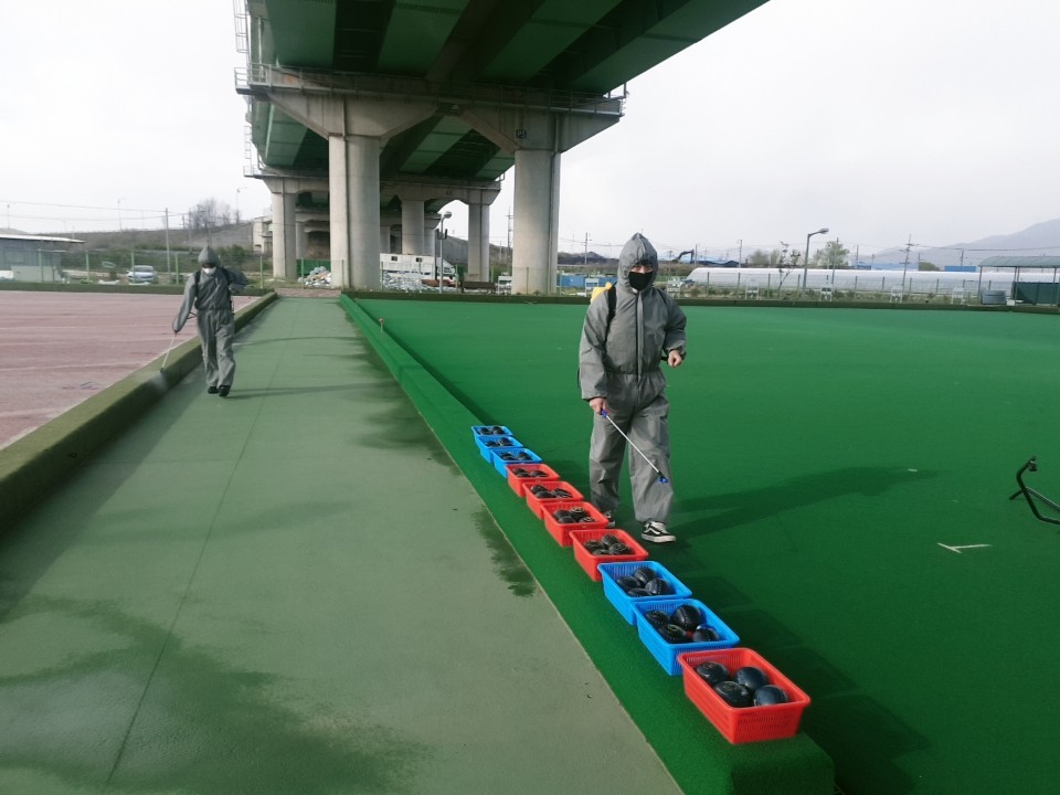 충주시체육회에서는 어제(22일)코로나19 방역지침 완화에 따른 시설개방에 대비하여 동호인의 감염예방과 쾌적한 체육시설 환경조성을 위하여 관내 파크골프장과 축구장 등 야외 체육시설에 대한 일제 방역소독을 실시했습니다. |