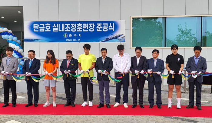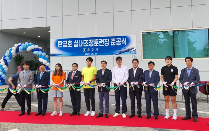 [탄금호 실내조정훈련장 준공식] -일시 : 2023. 6. 21(수) 09:30 -장소 : 탄금호국제조정경기장 내 실내훈련장 -주관 : 충주시 -내용 : 개회, 경과보고, 감사패 수여, 기념사, 축사, 테이프컷팅, 시설확인 등 *조정 전용 훈련장 조성으로 선수 기량 향상 및 생활체육 활성화 기대 *각종 대회 유치로 조정 발전 및 경제 활성화 도모