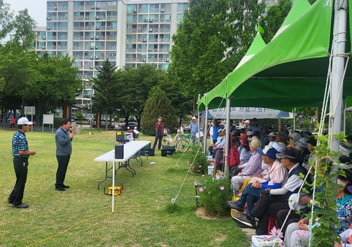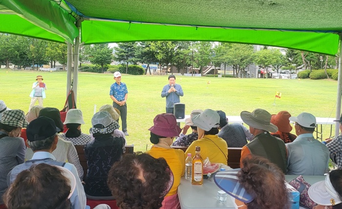[장수체육대학 그라운드골프대회 : 폐회식, 시상] -일시 : 2023. 6. 20(화) 08:00~13:00 (폐회식 : 11:30) -장소 : 대가미공원 -내용 : 그라운드골프대회(폐회식)