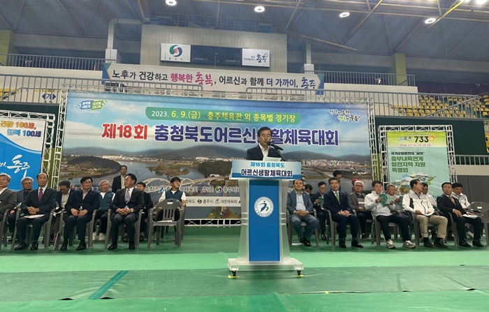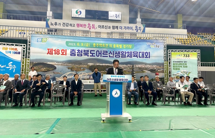 [제18회 충청북도어르신생활체육대회 : 충주시 개최] -일시 : 2023. 6. 9(금) -인원 : 11시군 10개종목 1,300여명 -주최 : 충청북도체육회(회장 윤현우) -주관 : 충주시체육회(회장 진용섭), 도회원종목단체 -종목(10종목) : 게이트볼, 그라운드골프, 생활체조, 축구, 소프트테니스, 탁구, 테니스, 궁도, 배드민턴, 볼링 |