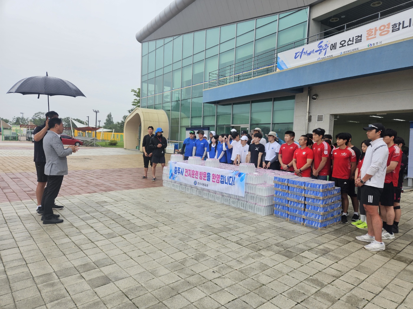 [조정 국가대표 및 대학부 전지훈련 격려] -일시 : 2023. 7. 4(화) -장소 : 탄금호 국제조정경기장 -주관 : 충주시체육회(회장 진용섭) -인원 : 조정 국가대표 및 대학부(40여 명) -격려(생수, 음료) 지원- -인사말씀(진용섭 충주시체육회장)- |