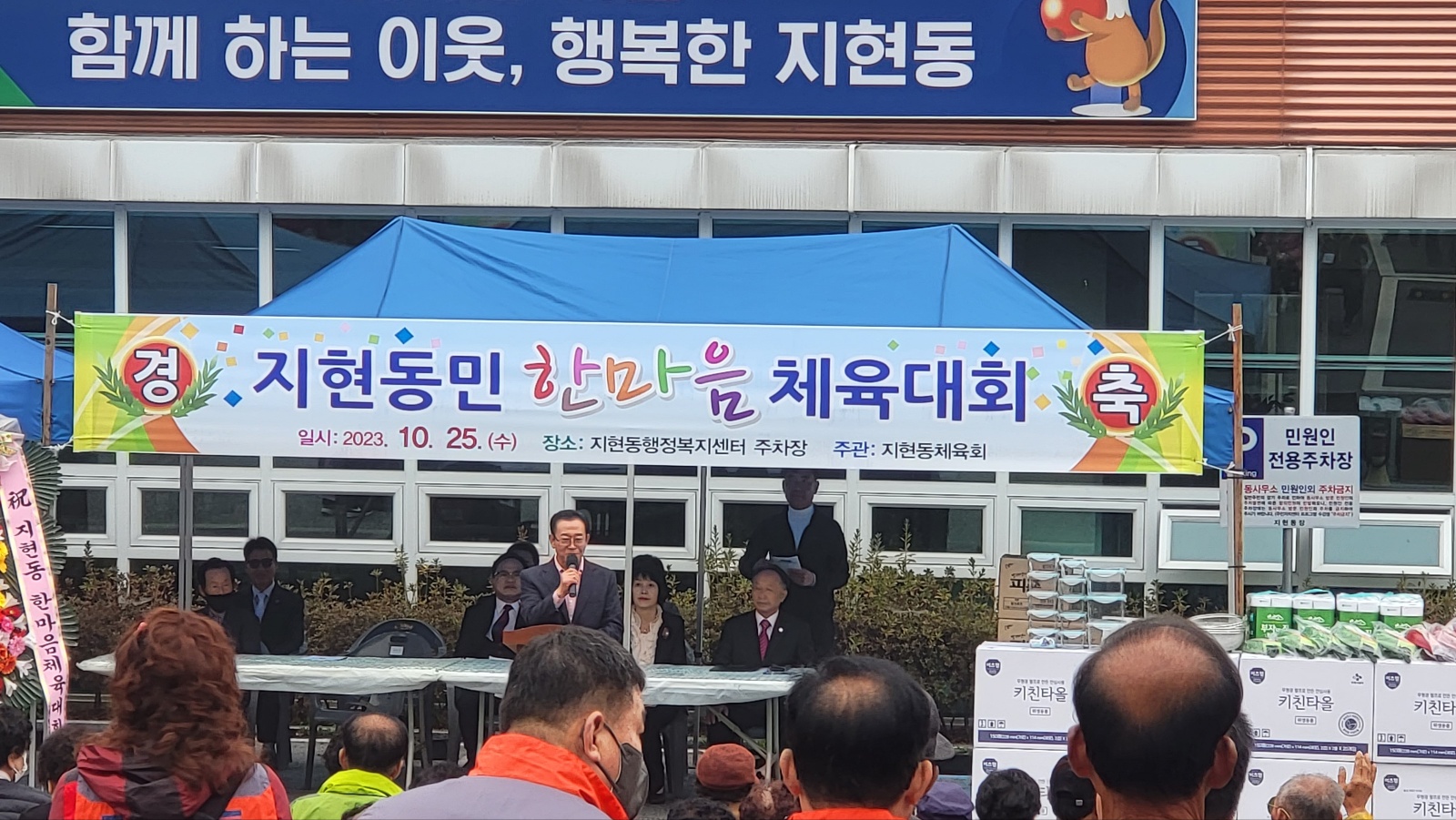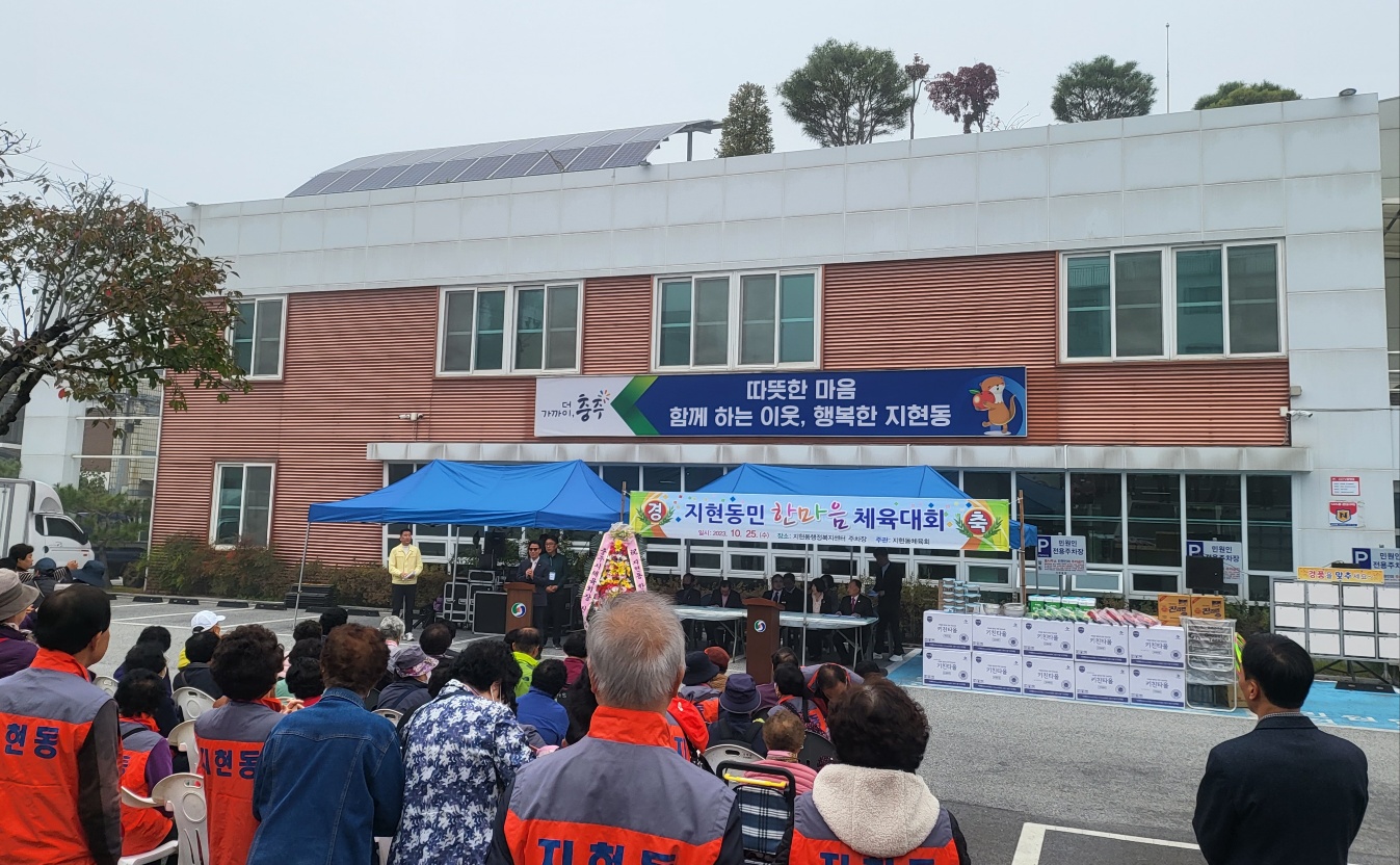 [2023 지현동 한마음 체육대회] -일시 : 2023. 10. 25(수) 09:30~ -장소 : 지현동 행정복지센터 -주관 : 지현동체육회(회장 조명연) -지현동 체육대회 개회식 내빈소개(김경택 지현동장)- -체육대회 개회식- -축사(이종배 국회의원)- -축사(박해수 충주시의회 의장)- -축사(진용섭 충주시체육회장 1)- -축사(진용섭 충주시체육회장 2)- -지현동 충주천변 걷기행사 출발- |