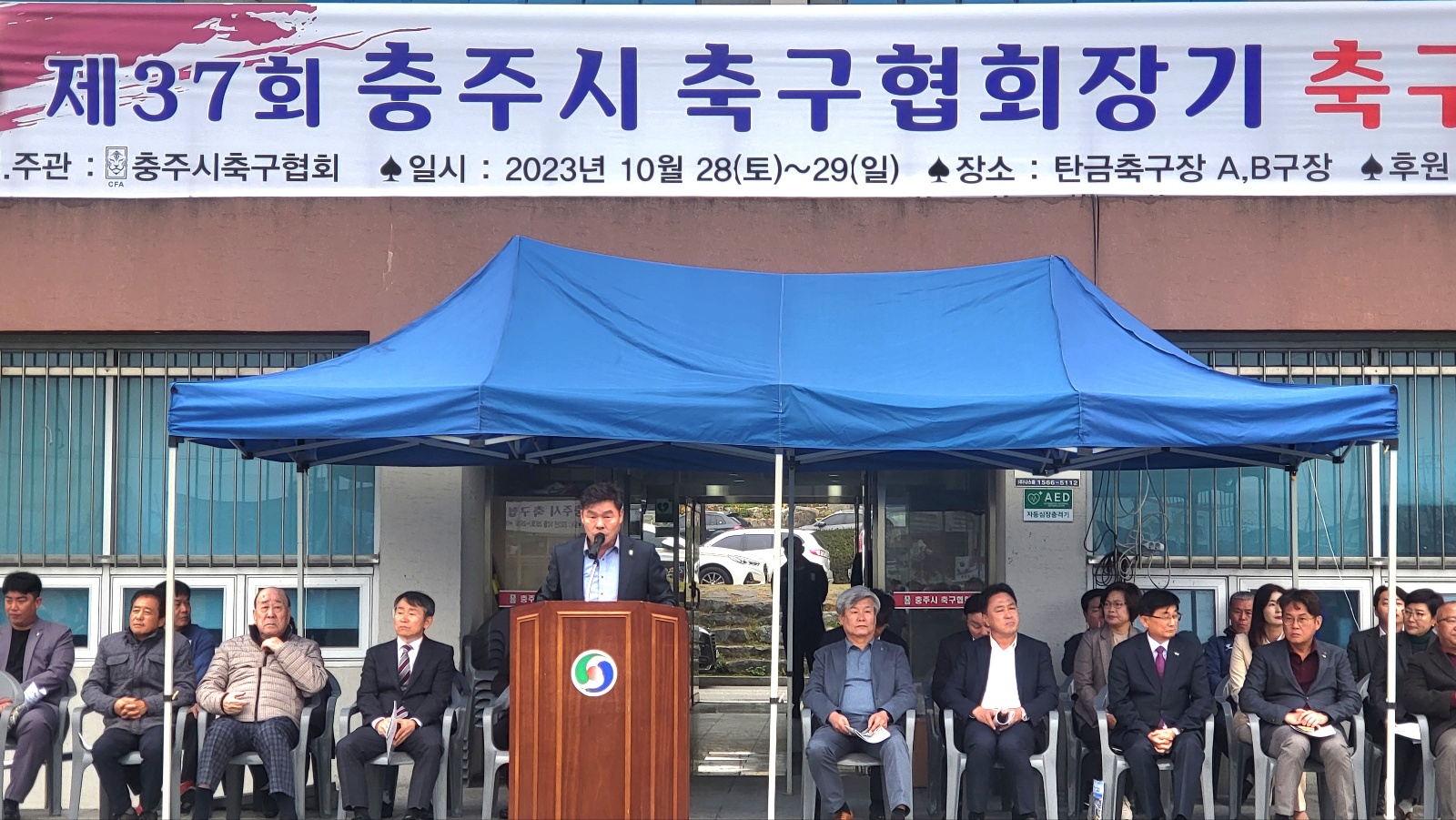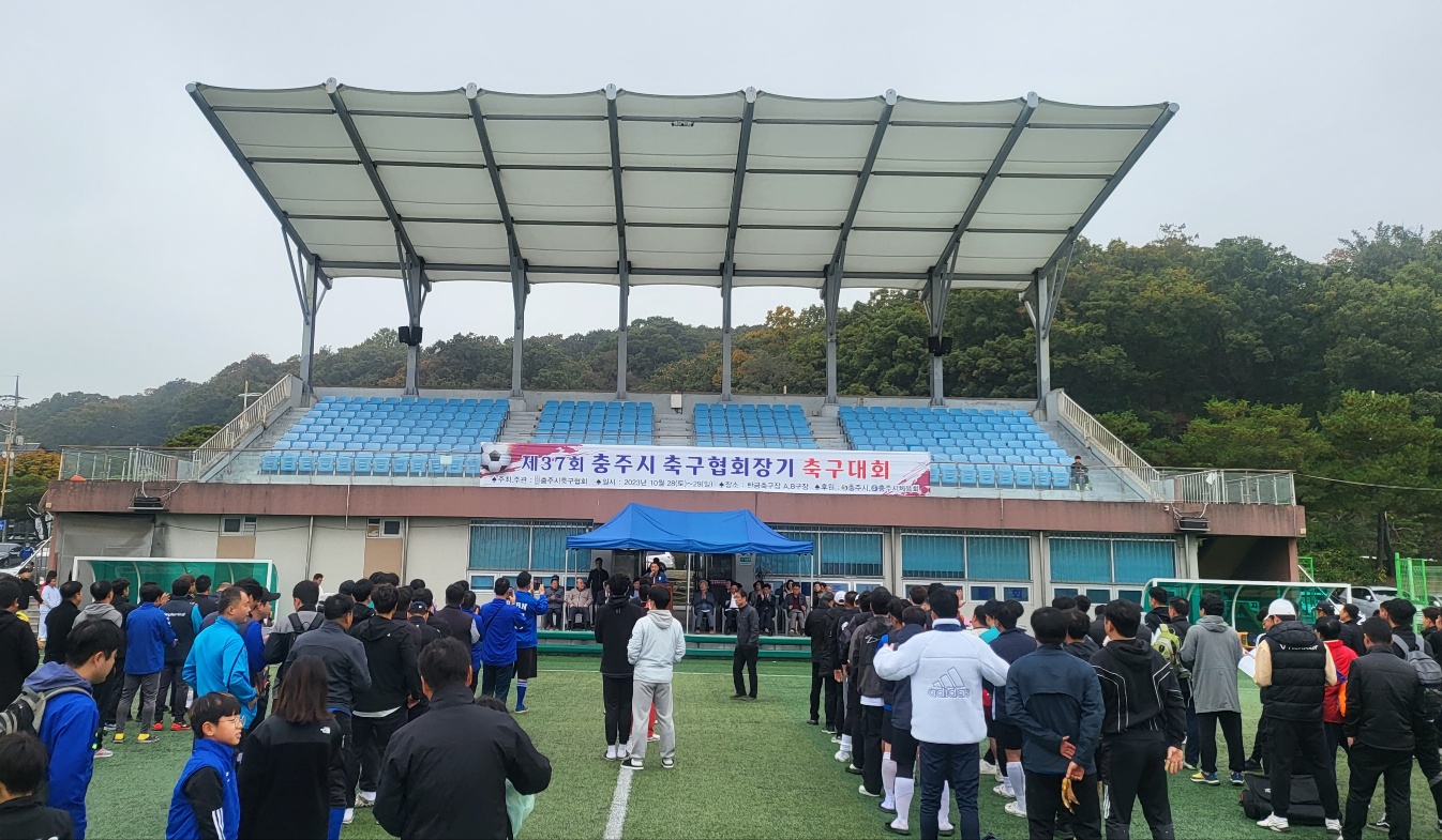 [제37회 충주시축구협회장기 축구대회] -일시 : 2023. 10. 28(토)~29(일) *개회식 : 10. 28(토) 10:00 -장소 : 탄금대 축구장 -주관 : 충주시축구협회(회장 조재광) -개회식 1- -개회식 내빈- -대회사(조재광 충주시축구협회장)- -격려사(강성덕 충북축구협회장)- -격려사(진용섭 충주시체육회장)- -축구 우수선수 장학금 수여- -선수선서- -개회식 2- -개회식 3- |