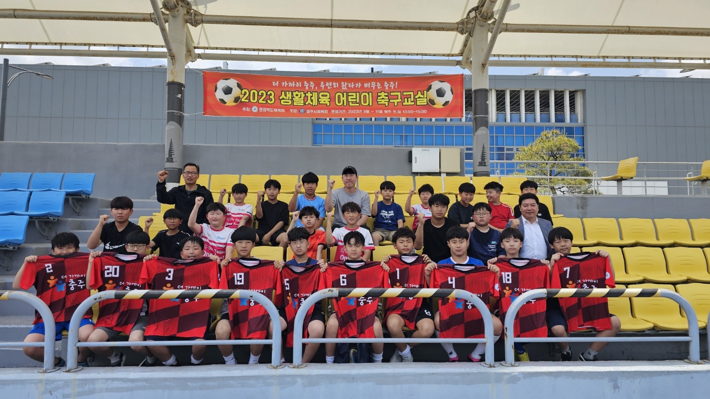 2023 생활체육 어린이축구교실 개강식 작성자 관리자 내용 [2023 생활체육 어린이축구교실 개강식] -일시 : 2023. 5. 20(토) 13:00-장소 : 충주종합운동장 보조경기장-내용 : 개강식(인사말씀, 유니폼 등 전달, 기념사진) 첨부파일 2023 생활체육 어린이축구교실 개강식(23. 5. 20일).jpg [ Size : 416.91KB, Down : 122 ] 미리보기 다운로드 태그 작성일 2023년 6월 5일 16시 54분 40초 수정일 추가정보 임시 정보가 없습니다. 목록보기