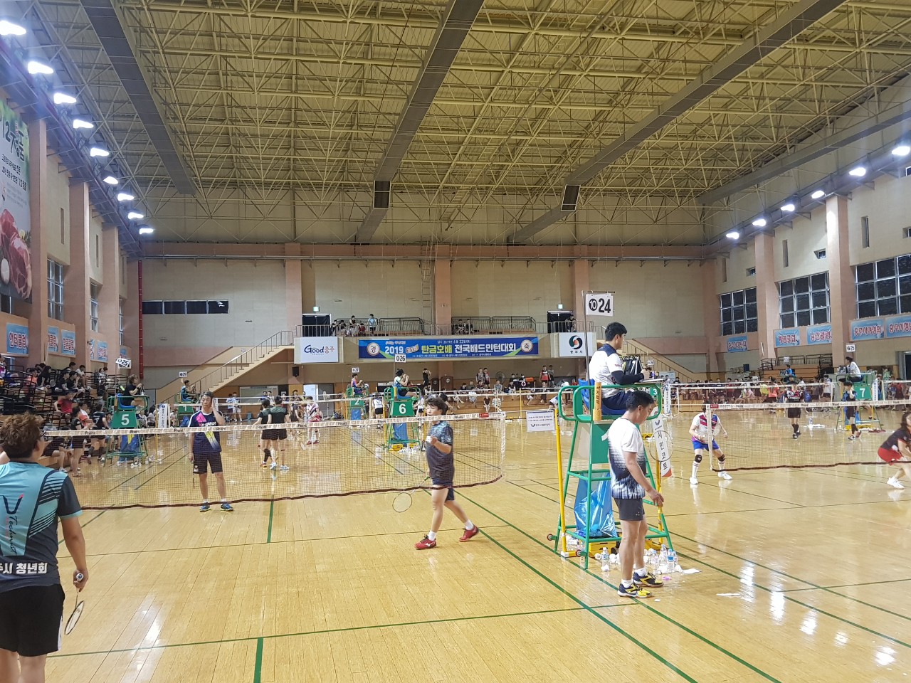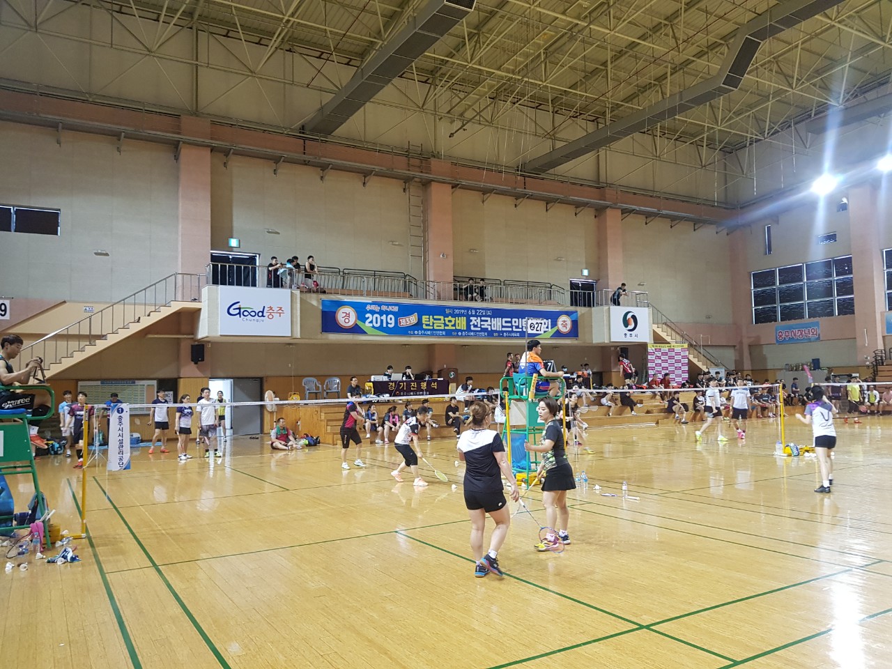 제3회탄금호배전국배드민턴대회 일 시 : 2019. 6. 22. - 23. 장 소 : 호암제2체육관 배드민턴경기장 |